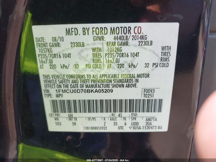 Колір ЧорнийЦиліндри 4Привід Передній привідVIN 1FMCU0D70BKA05209Стан Заводиться та їде (перевірено)Ушкодження Передня ліва