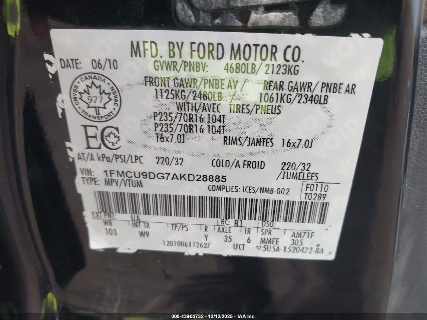 2010 FORD ESCAPE - 1FMCU9DG7AKD28885, колір - Чорний, 3.0, Бензин, Повний привід із США