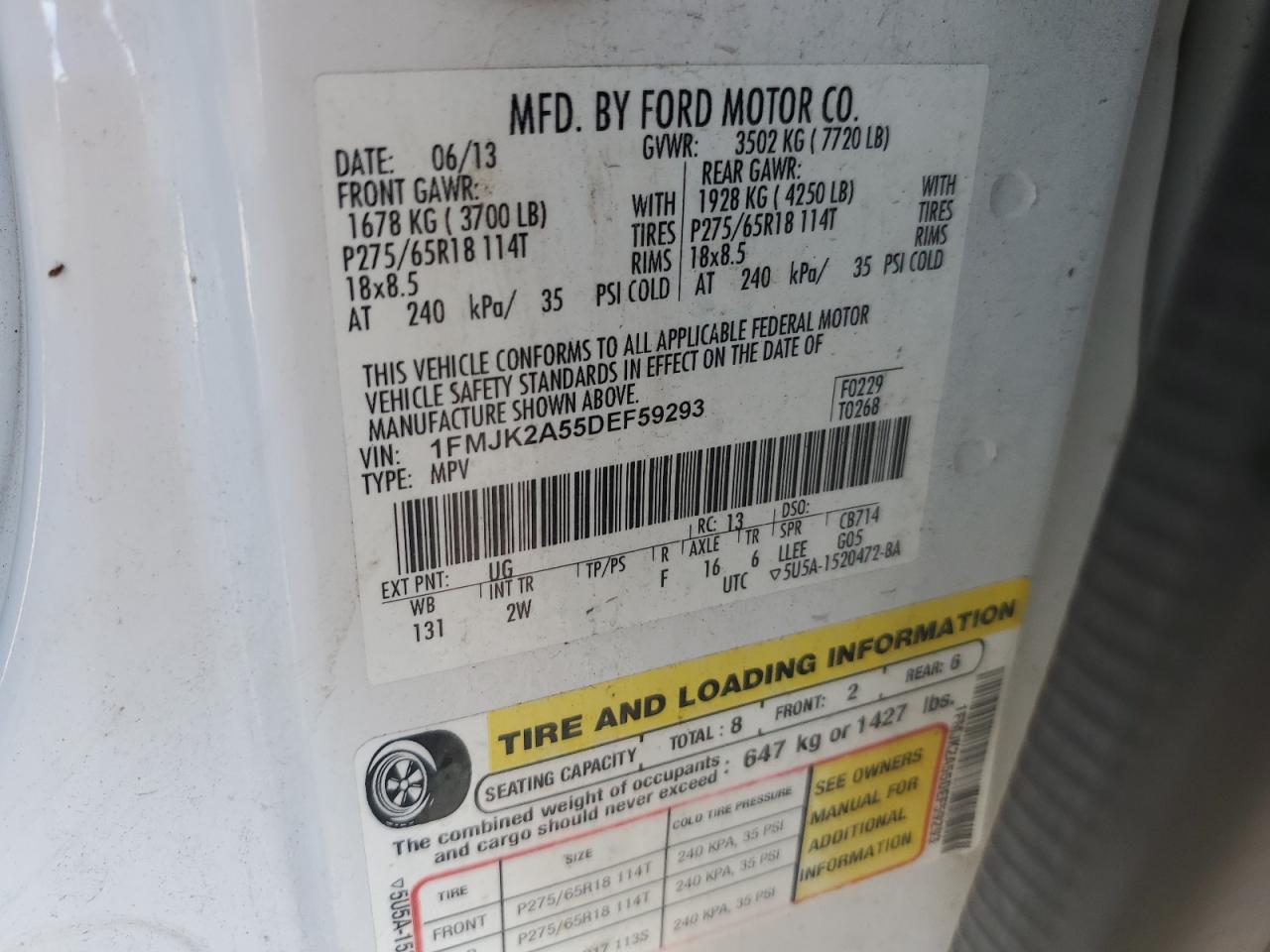 2013 FORD EXPEDITION - 1FMJK2A55DEF59293, колір - Білий, 5.4, Бензин, 4x4 з заднім приводом із США