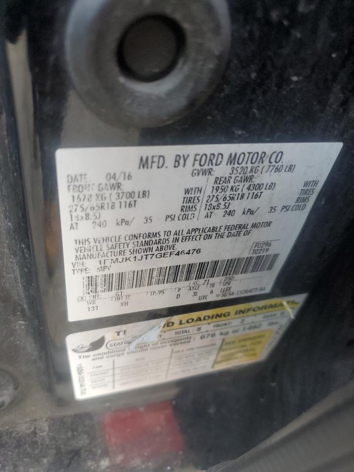 2016 FORD EXPEDITION - 1FMJK1JT7GEF46476, колір - Чорний, 3.5, Бензин, 4x4 з заднім приводом із США