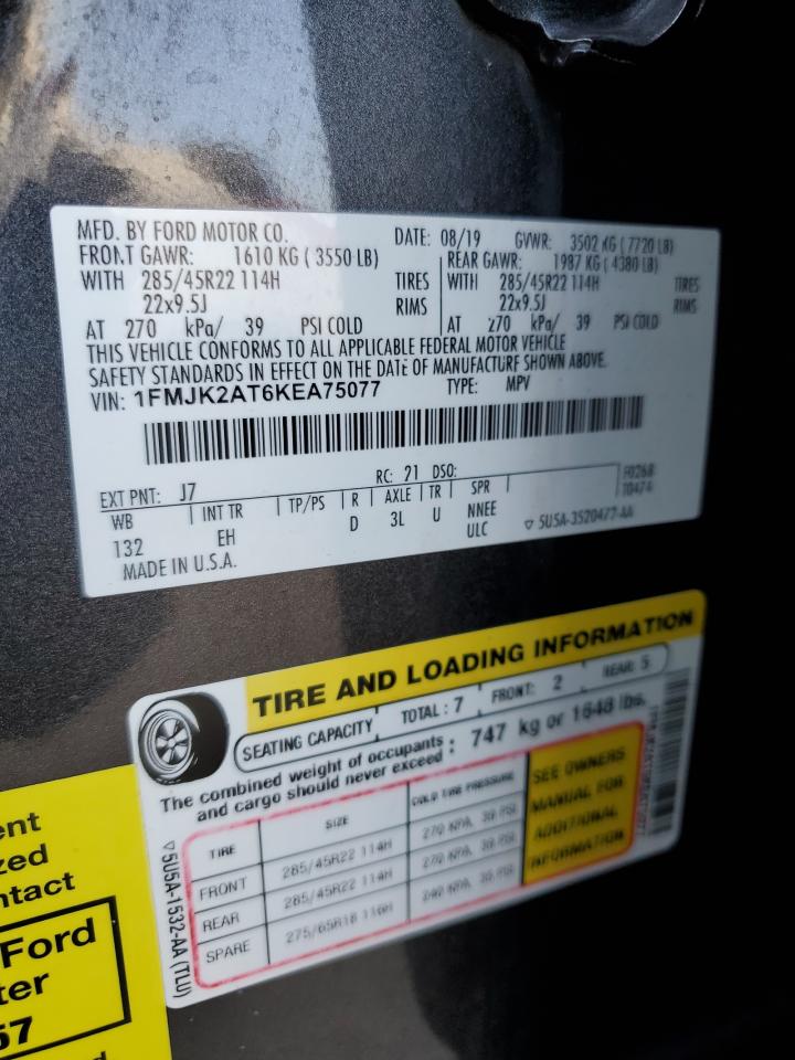2019 FORD EXPEDITION - 1FMJK2AT6KEA75077, колір - Сірий, 3.5, Бензин, 4x4 з заднім приводом із США