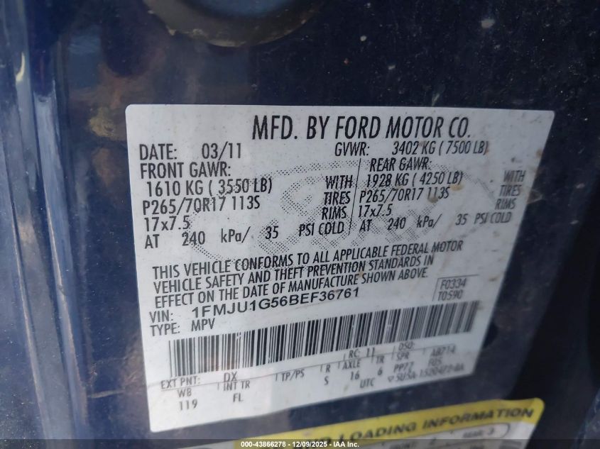 2011 FORD EXPEDITION - 1FMJU1G56BEF36761, колір - Синій, 5.4, Бензин, Повний привід із США
