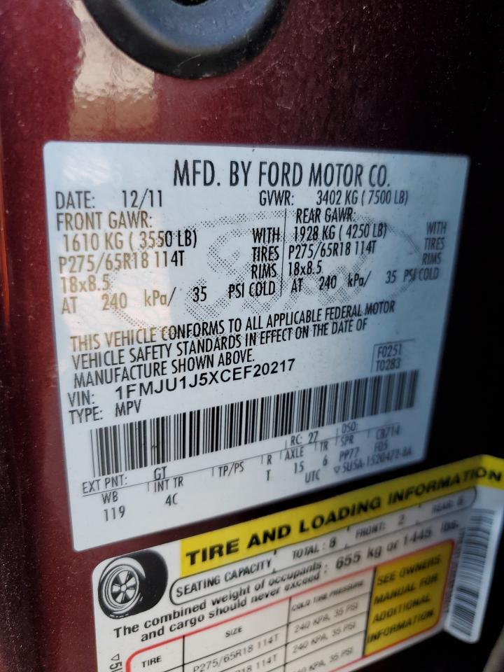 2012 FORD EXPEDITION - 1FMJU1J5XCEF20217, колір - Бургундія, 5.4, Бензин, 4x4 з заднім приводом із США