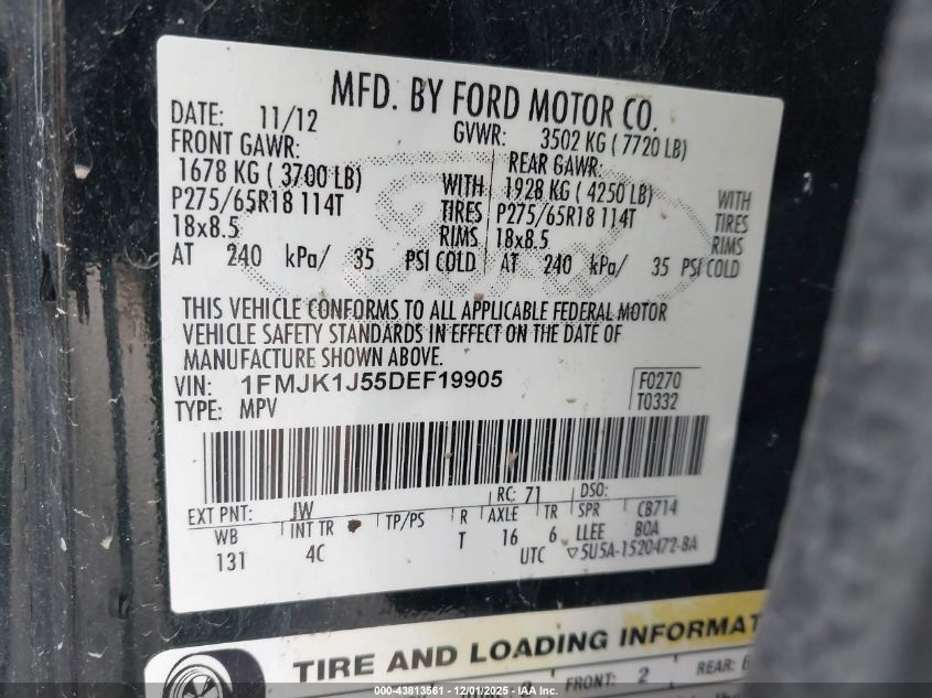 2013 FORD EXPEDITION - 1FMJK1J55DEF19905, колір - Зелений, 5.4, Бензин, Повний привід із США
