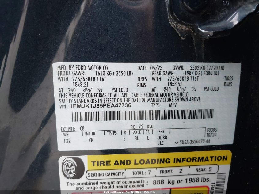 2023 FORD EXPEDITION - 1FMJK1J85PEA47736, колір - Чорний, 3.5, Бензин, Повний привід із США