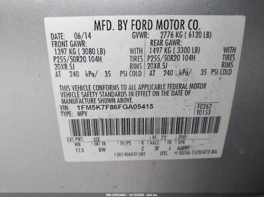 Колір СрібнийЦиліндри 6Привід Передній привідVIN 1FM5K7F86FGA05415Стан Заводиться та їде (перевірено)Ушкодження Звичайний знос