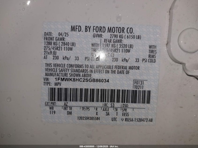 2025 FORD EXPLORER - 1FMWK8HC2SGB86034, колір - Білий, 3.0, Бензин, Повний привід із США