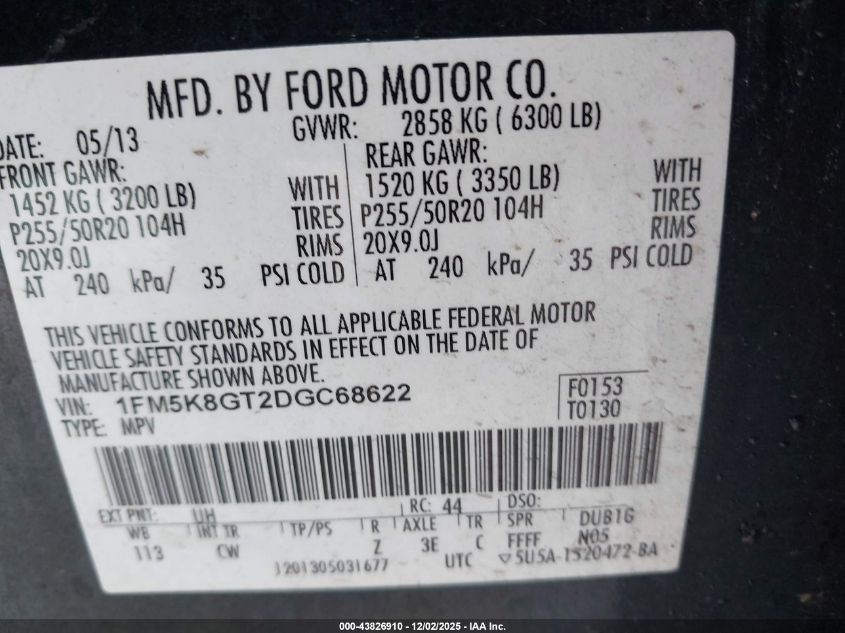 Колір ЧорнийЦиліндри 6Привід Повний привідVIN 1FM5K8GT2DGC68622Стан Заводиться та їде (перевірено)Ушкодження Передня праваДата аукціона 2025-12-17