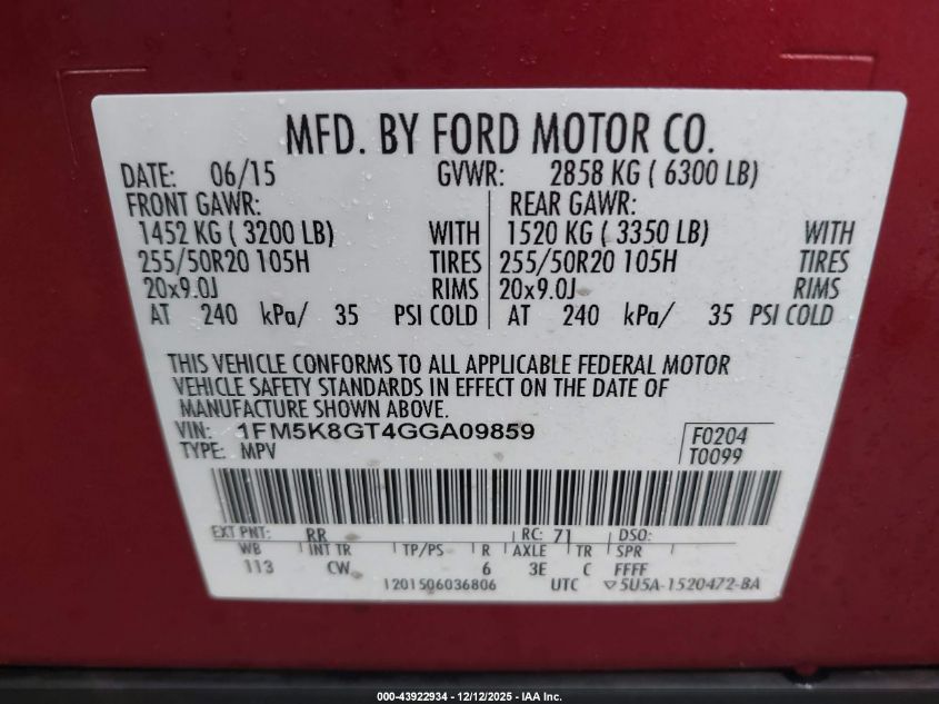 Колір ЧервонийЦиліндри 6Привід Повний привідVIN 1FM5K8GT4GGA09859Стан Заводиться та їде (перевірено)Ушкодження Передня або задня