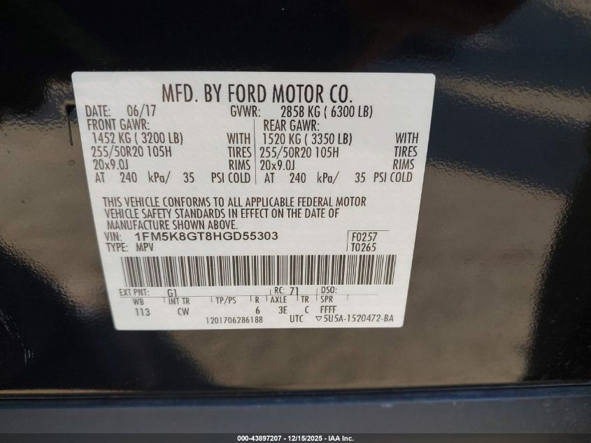 2017 FORD EXPLORER - 1FM5K8GT8HGD55303, колір - , 3.5, Бензин, Повний привід із США
