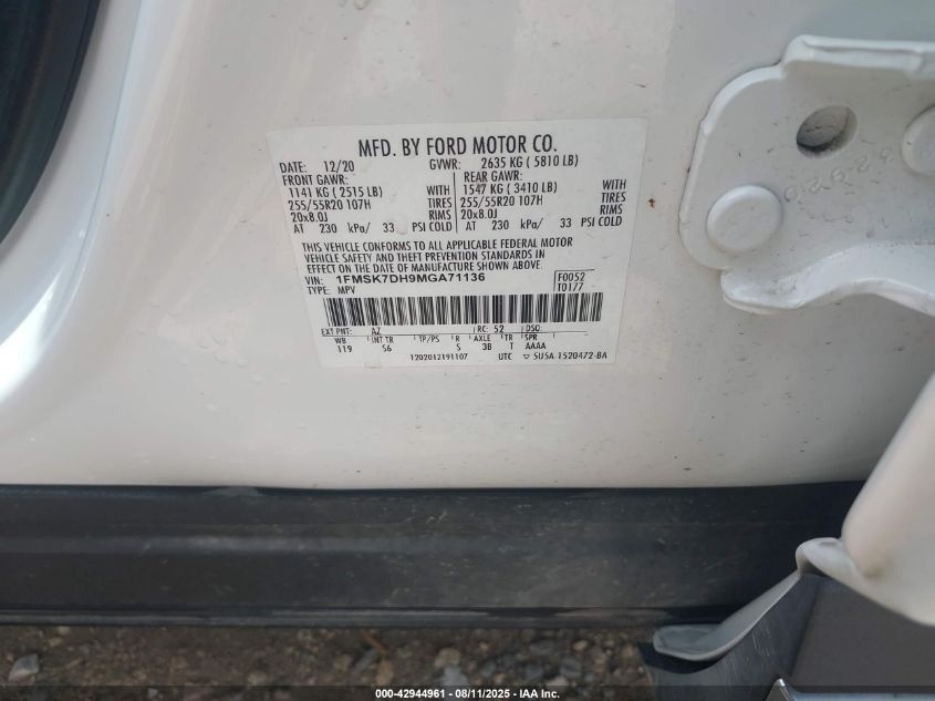2021 FORD EXPLORER - 1FMSK7DH9MGA71136, колір - Білий, 2.3, Бензин, із США