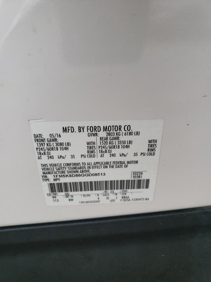 2016 FORD EXPLORER - 1FM5K8D86GGD08513, колір - Білий, 3.5, Бензин, 4x4 з переднім приводом із США
