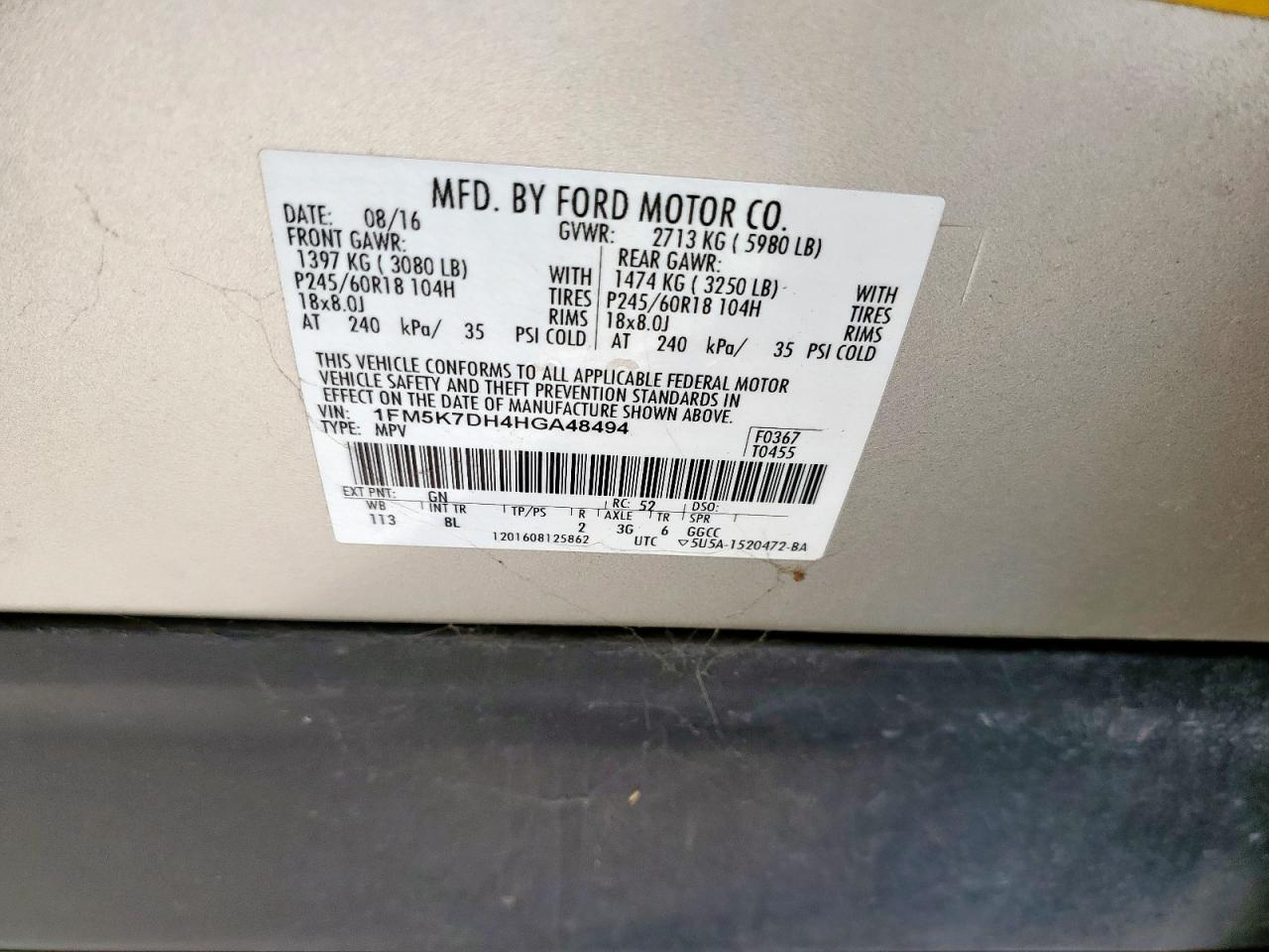 2017 FORD EXPLORER - 1FM5K7DH4HGA48494, колір - Бежевий, 2.3, Бензин, із США