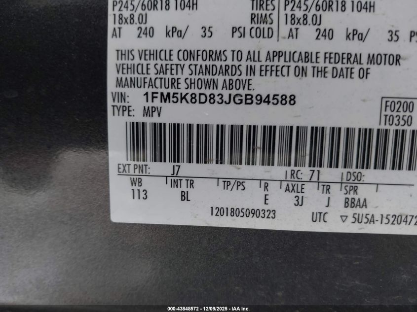 Колір Олов`янийЦиліндри 6Привід Повний привідVIN 1FM5K8D83JGB94588Стан СтаціонарноУшкодження Передня або задня