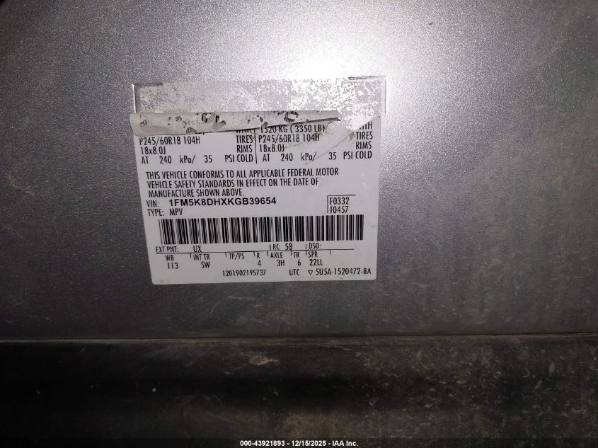 2019 FORD EXPLORER - 1FM5K8DHXKGB39654, колір - Срібний, 2.3, Бензин, Повний привід із США