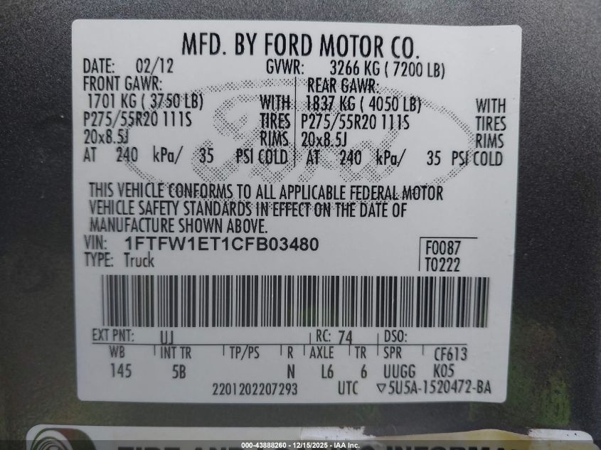 Колір СірийЦиліндри 6Привід Повний привідVIN 1FTFW1ET1CFB03480Стан Заводиться та їде (перевірено)Ушкодження Перекидання