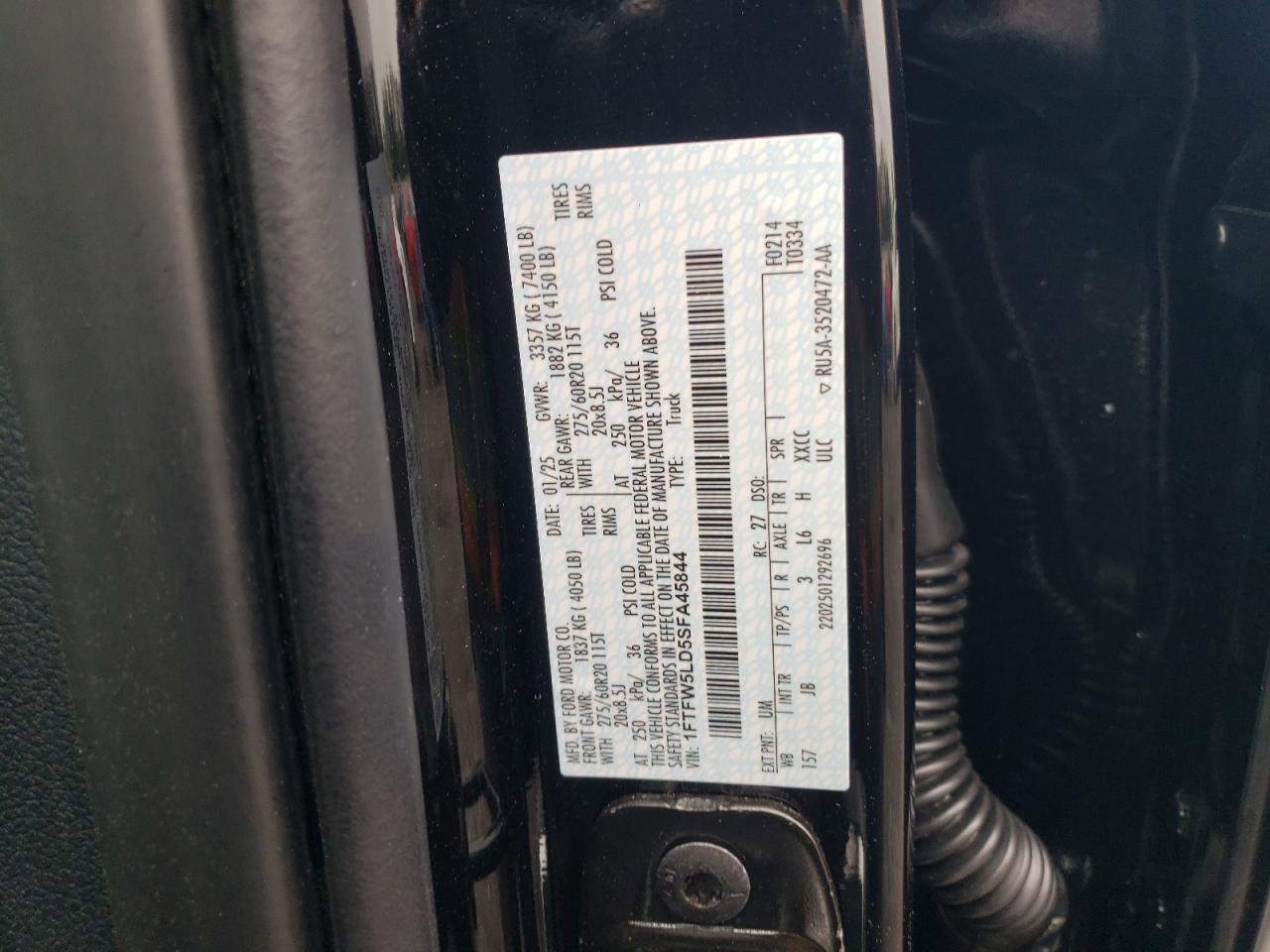 2025 FORD F-150 - 1FTFW5LD5SFA45844, колір - Чорний, 3.5, Гібрид, 4x4 з заднім приводом із США