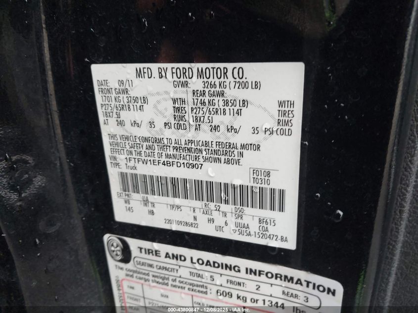 2011 FORD F-150 - 1FTFW1EF4BFD10907, колір - Чорний, 5.0, Бензин, Повний привід із США