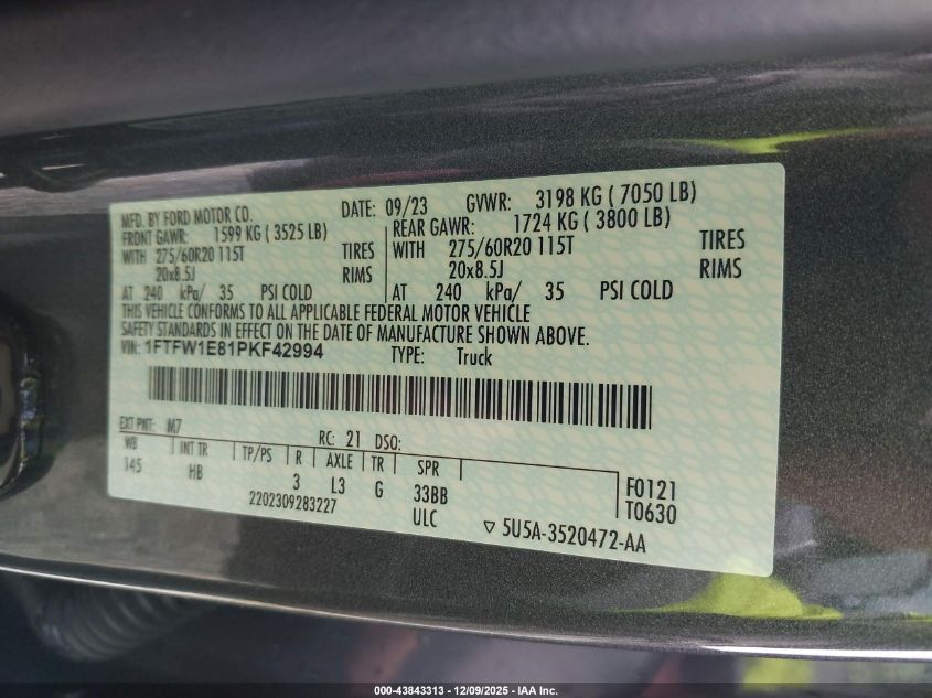 2023 FORD F-150 - 1FTFW1E81PKF42994, колір - Сірий, 3.5, Бензин, Повний привід із США