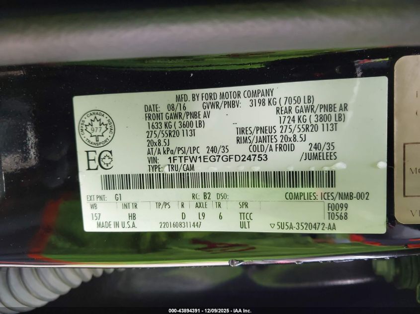 2016 FORD F-150 - 1FTFW1EG7GFD24753, колір - Чорний, 3.5, Бензин, Повний привід із США