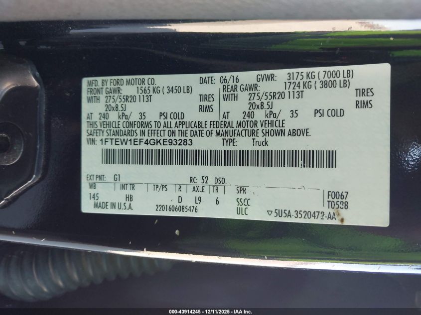 Колір ЧорнийЦиліндри 8Привід Повний привідVIN 1FTEW1EF4GKE93283Стан Заводиться та їде (перевірено)Ушкодження Передня або задня