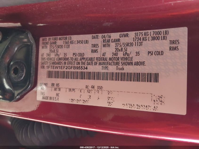 2016 FORD F-150 - 1FTEW1EF2GFB95534, колір - Червоний, 5.0, Бензин, Повний привід із США