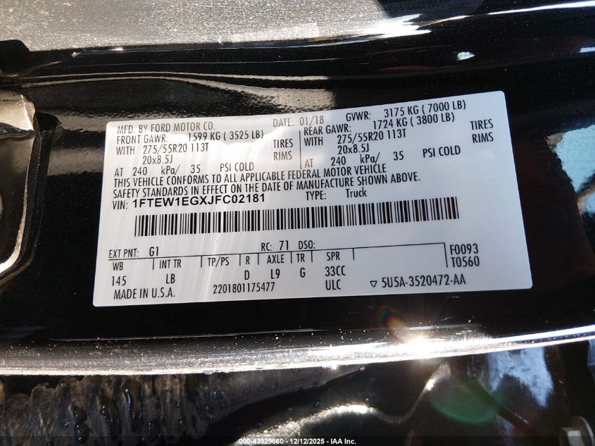 2018 FORD F-150 - 1FTEW1EGXJFC02181, колір - Чорний, 3.5, Бензин, Повний привід із США