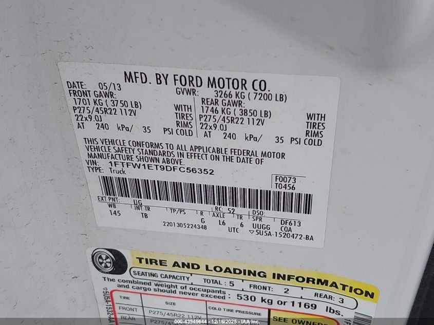 2013 FORD F-150 - 1FTFW1ET9DFC56352, колір - Білий, 3.5, Бензин, Повний привід із США