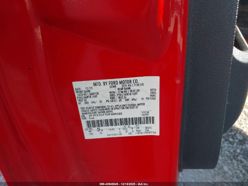 2013 FORD F-150 - 1FTFX1CF7DFA85322, колір - Червоний, 5.0, Бензин, із США