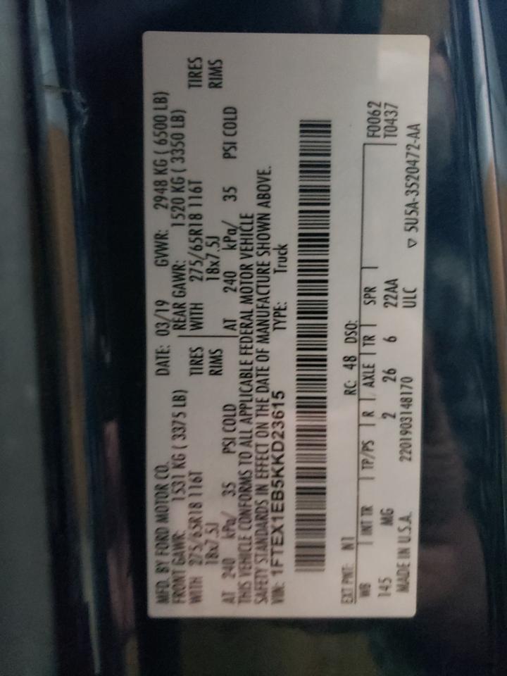 2019 FORD F-150 - 1FTEX1EB5KKD23615, колір - Синій, 3.3, Бензин, 4x4 з заднім приводом із США
