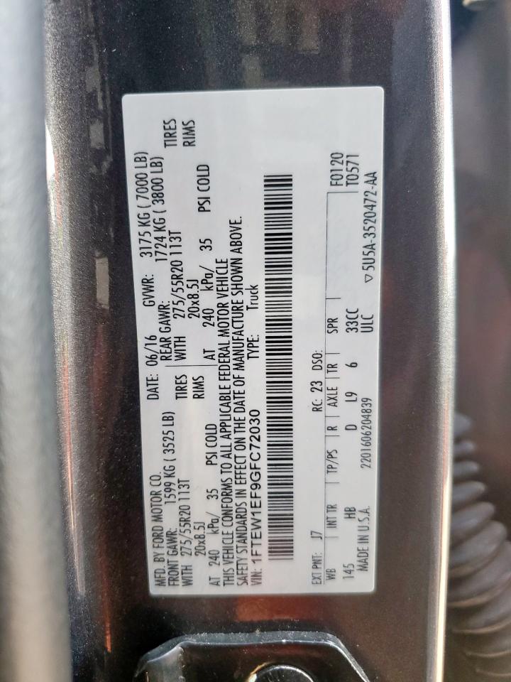 2016 FORD F-150 - 1FTEW1EF9GFC72030, колір - Сірий, 5.0, Бензин, 4x4 з заднім приводом із США