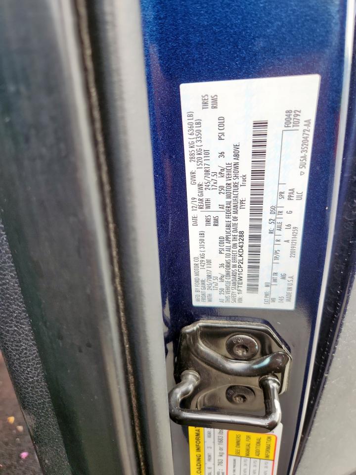 2020 FORD F-150 - 1FTEW1CP2LKD43288, колір - Синій, 2.7, Бензин, Задній привід із США