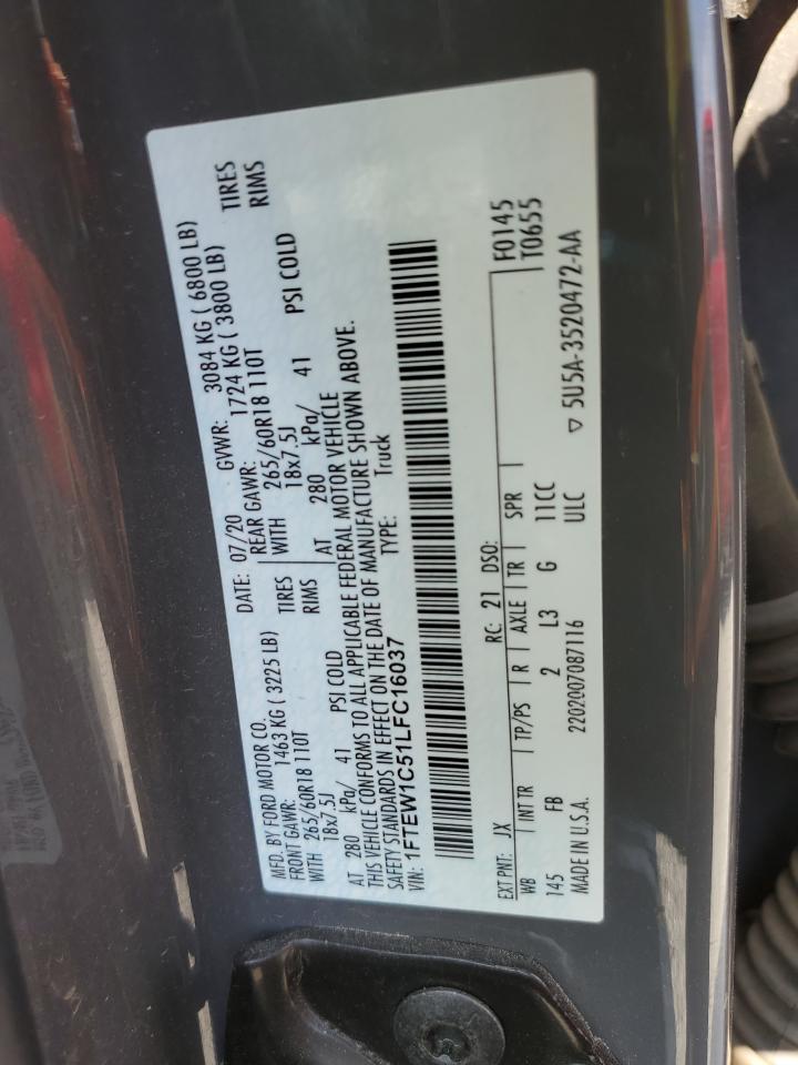 2020 FORD F-150 - 1FTEW1C51LFC16037, колір - Сірий, 5.0, Бензин, Задній привід із США