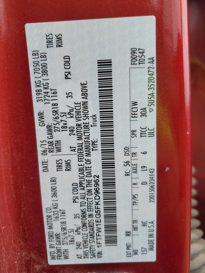 2015 FORD F-150 - 1FTFW1EG5FKD96962, колір - Червоний, 3.5, Бензин, 4x4 з заднім приводом із США