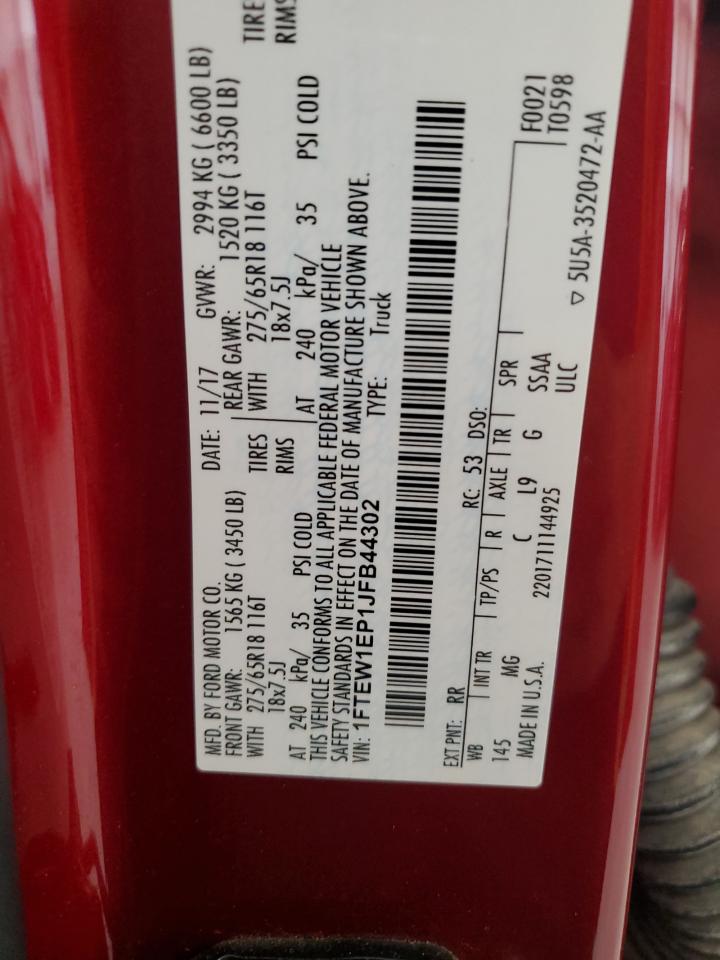 2018 FORD F-150 - 1FTEW1EP1JFB44302, колір - Червоний, 2.7, Бензин, 4x4 з заднім приводом із США