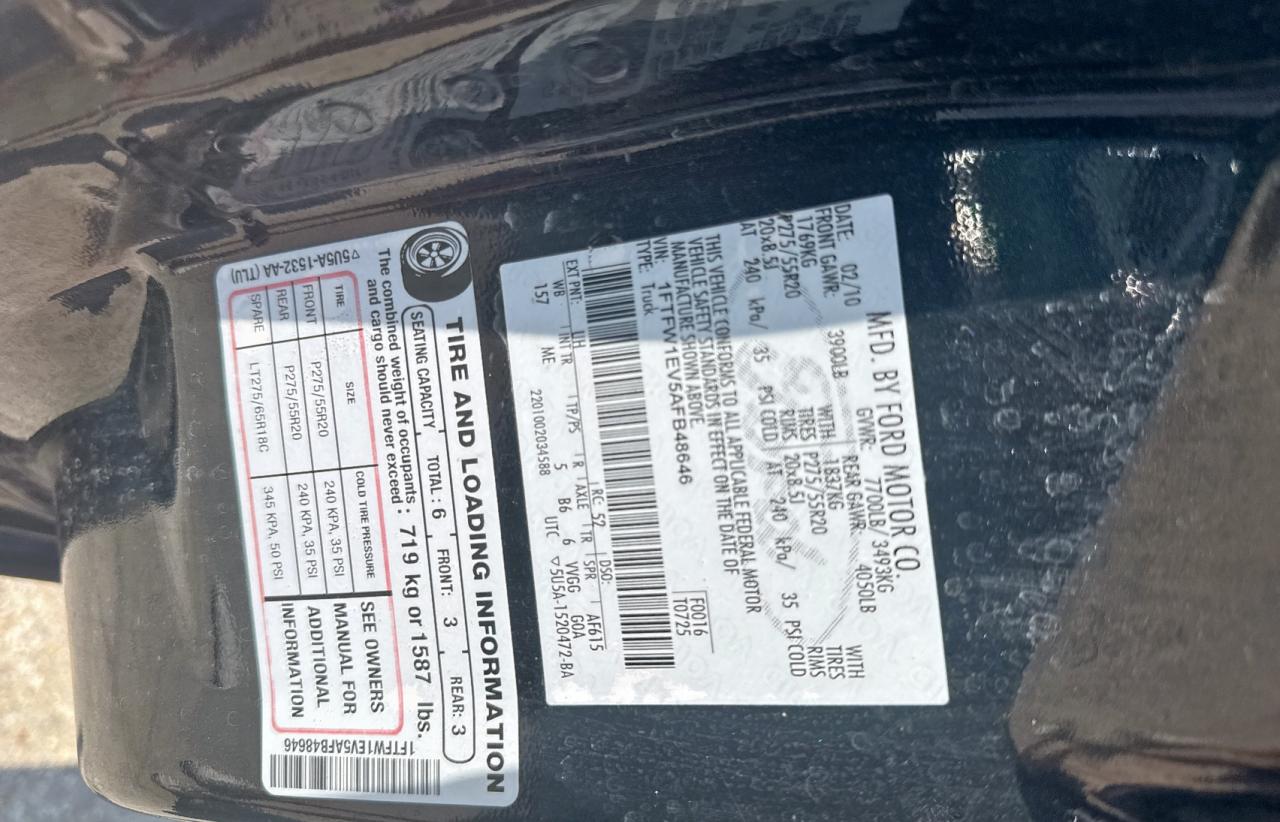 Колір ЧорнийЦиліндри 8Привід 4x4 з заднім приводомVIN 1FTFW1EV5AFB48646Стан Заводиться та їде (перевірено)Ушкодження НезначніДата аукціона 2025-10-07