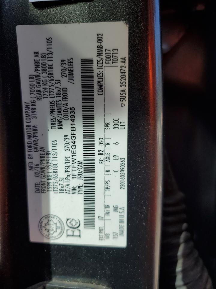 2016 FORD F-150 - 1FTFW1EG4GFB14935, колір - Сірий, 3.5, Бензин, 4x4 з заднім приводом із США
