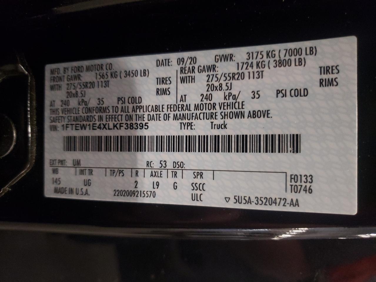 2020 FORD F-150 - 1FTEW1E4XLKF38395, колір - Чорний, 3.5, Бензин, 4x4 з заднім приводом із США