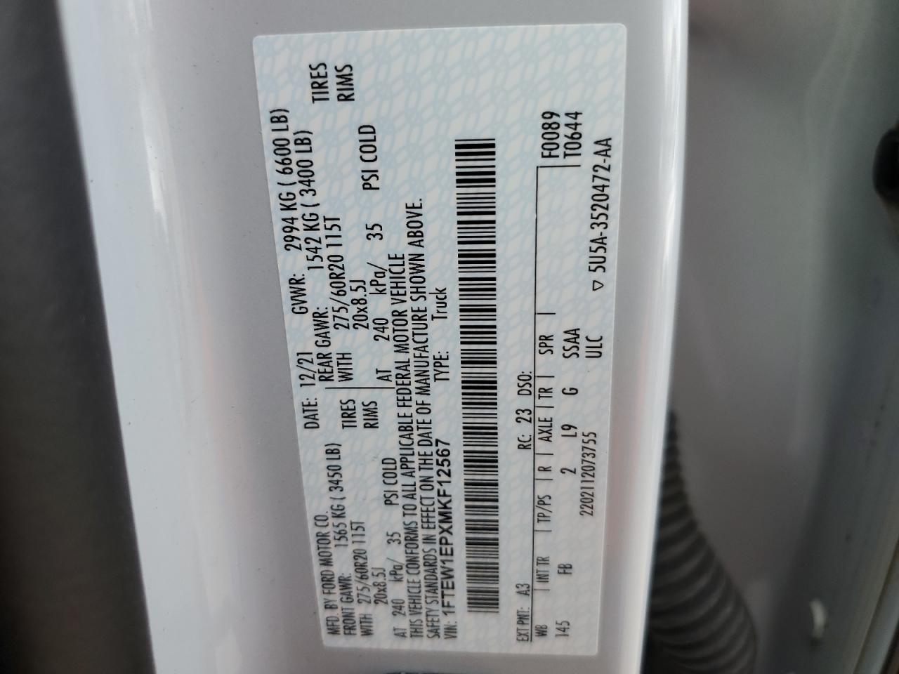 Колір СрібнийЦиліндри 6Привід 4x4 з заднім приводомVIN 1FTEW1EPXMKF12567Стан Заводиться та їде (перевірено)Ушкодження Передня або задня