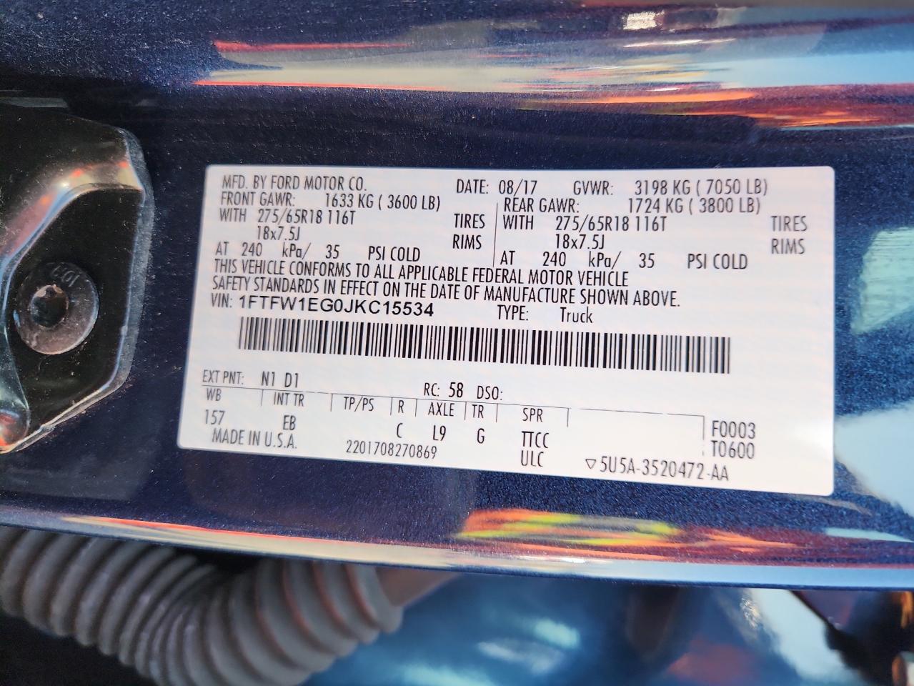 2018 FORD F-150 - 1FTFW1EG0JKC15534, колір - Синій, 3.5, Бензин, 4x4 з заднім приводом із США