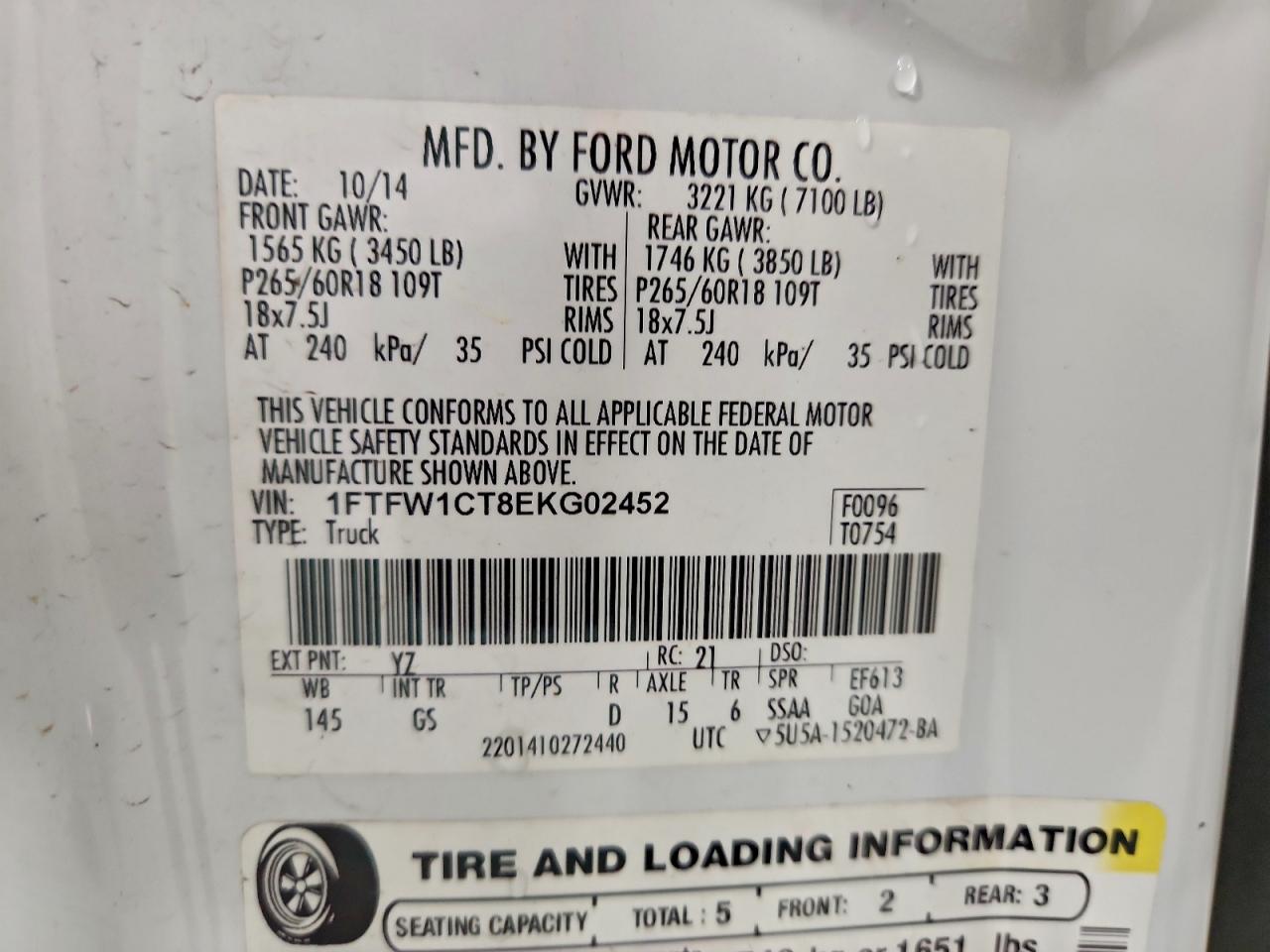 2014 FORD F-150 - 1FTFW1CT8EKG02452, колір - Білий, 3.5, Бензин, Задній привід із США