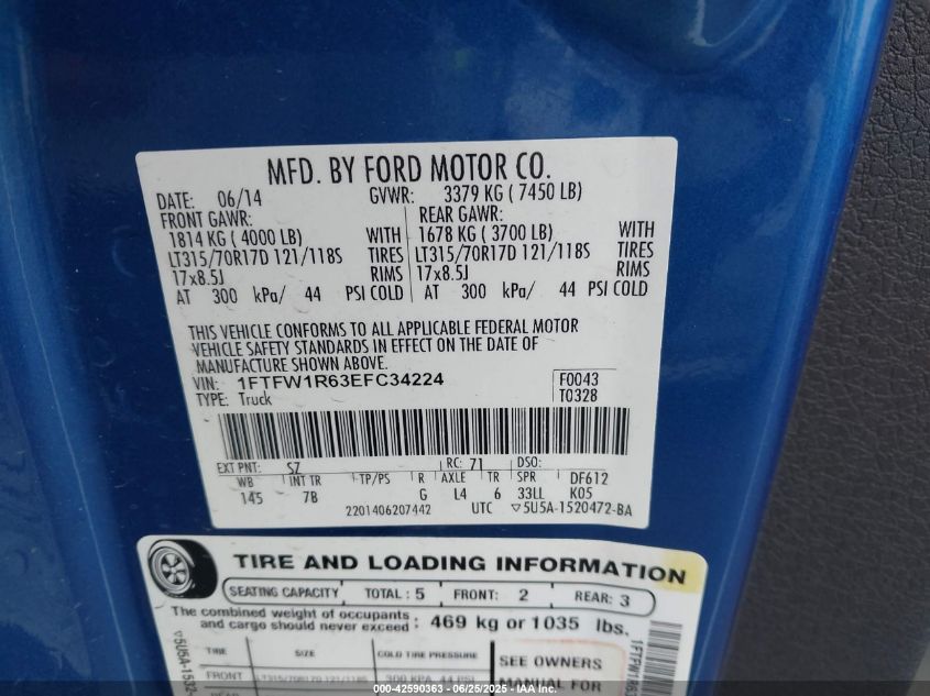 2014 FORD F-150 - 1FTFW1R63EFC34224, колір - Синій, 6.2, Бензин, Повний привід із США