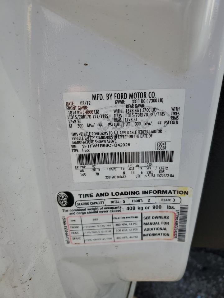 2012 FORD F-150 - 1FTFW1R66CFB42926, колір - Білий, 6.2, Бензин, 4x4 з заднім приводом із США