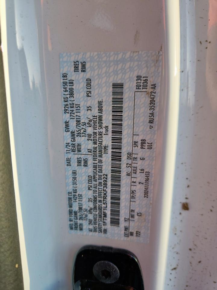 2024 FORD F-150 - 1FTMF1L57RKF38922, колір - Білий, 5.0, Бензин, 4x4 з заднім приводом із США