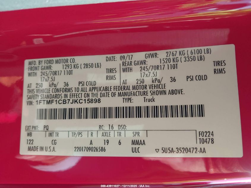 2018 FORD F-150 - 1FTMF1CB7JKC15898, колір - Червоний, 3.3, Бензин, із США