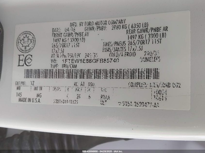 2016 FORD F-150 - 1FTEW1E88GFB85740, колір - Білий, 3.5, Бензин, Повний привід із США