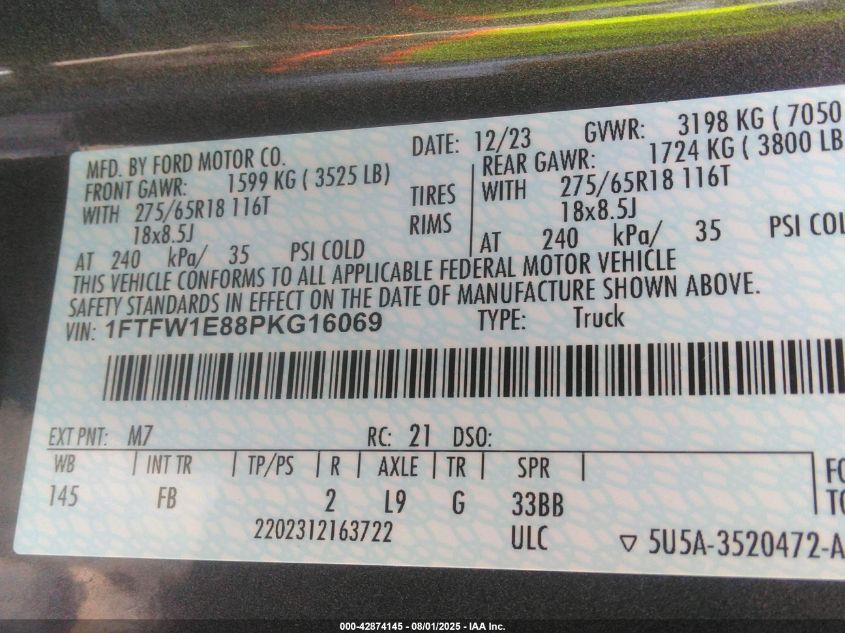 2023 FORD F-150 - 1FTFW1E88PKG16069, колір - Сірий, 3.5, Бензин, Повний привід із США
