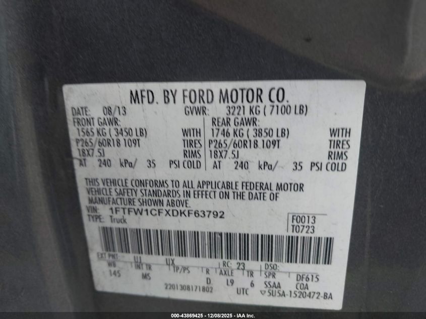 Колір СірийЦиліндри 8VIN 1FTFW1CFXDKF63792Стан Заводиться та їде (перевірено)Ушкодження Передня або задня