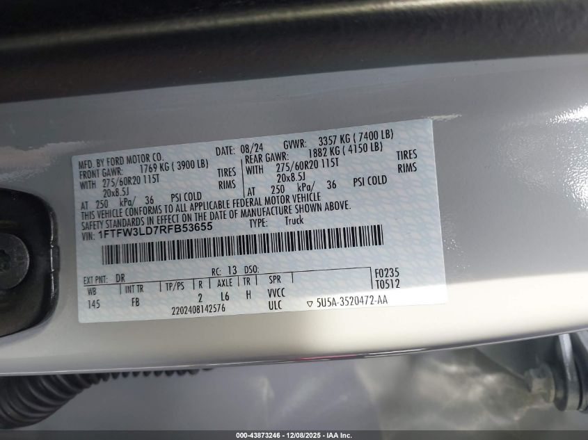 2024 FORD F-150 - 1FTFW3LD7RFB53655, колір - Сірий, 3.5, Гібрид, Повний привід із США