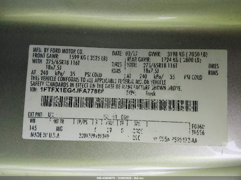 2018 FORD F-150 - 1FTFX1EG4JFA77888, колір - Срібний, 3.5, Бензин, Повний привід із США